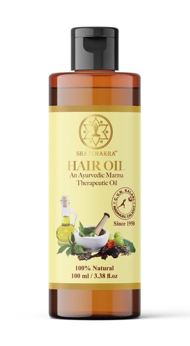Ayurvedic Marma Therapeutic Hair oil, infused with potent herbal extracts that nourish and fortify hair follicles.
